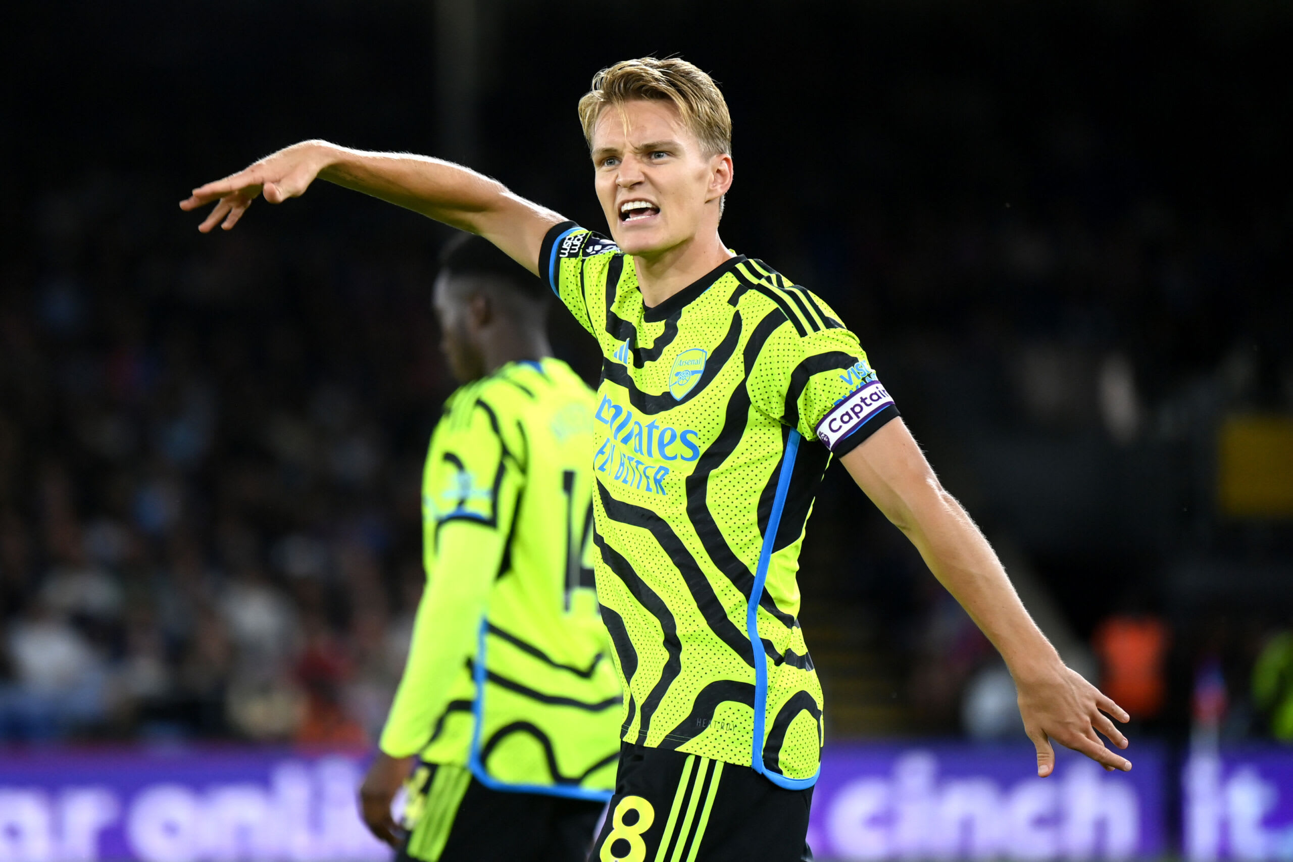 Odegaard opened the scoring from the spot. (Photo by Mike Hewitt/Getty Images)