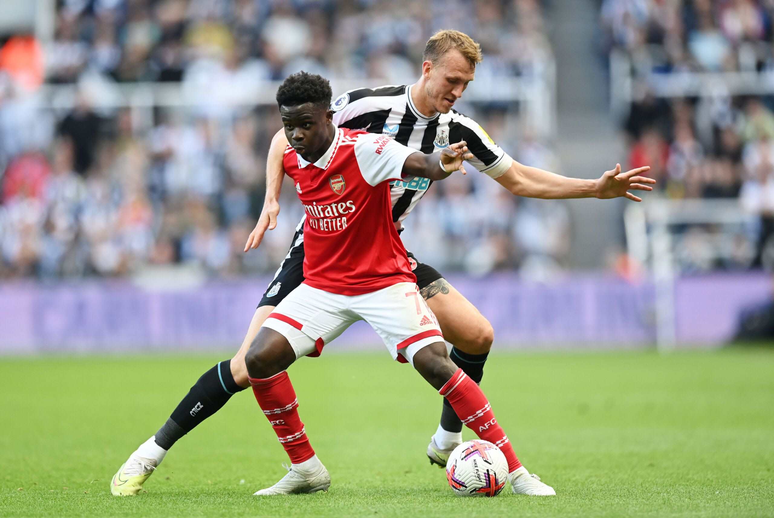 Bukayo Saka will be looking to get the better of Dan Burn. (Photo by Michael Regan/Getty Images)