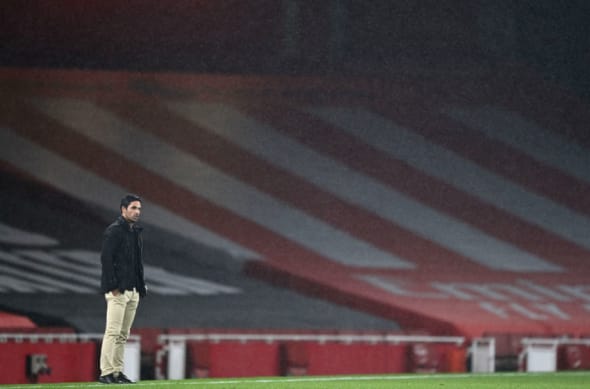 LONDON, ENGLAND – JULY 07: Mikel Arteta, Manager of Arsenal looks on during the Premier League match between Arsenal FC and Leicester City at Emirates Stadium on July 07, 2020 in London, England. Football Stadiums around Europe remain empty due to the Coronavirus Pandemic as Government social distancing laws prohibit fans inside venues resulting in all fixtures being played behind closed doors. (Photo by Shaun Botterill/Getty Images)