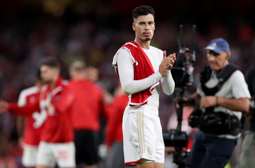 Gabriel Martinelli brought Arsenal’s losing streak against City to a satisfying end. (Photo by Ryan Pierse/Getty Images)