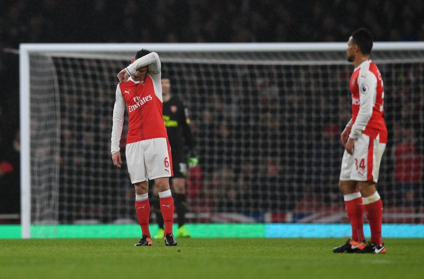 LONDON, ENGLAND - JANUARY 31: Arsenal players show their dejection after Watford's second goal during the Premier League match between Arsenal and Watford at Emirates Stadium on January 31, 2017 in London, England. (Photo by Shaun Botterill/Getty Images)