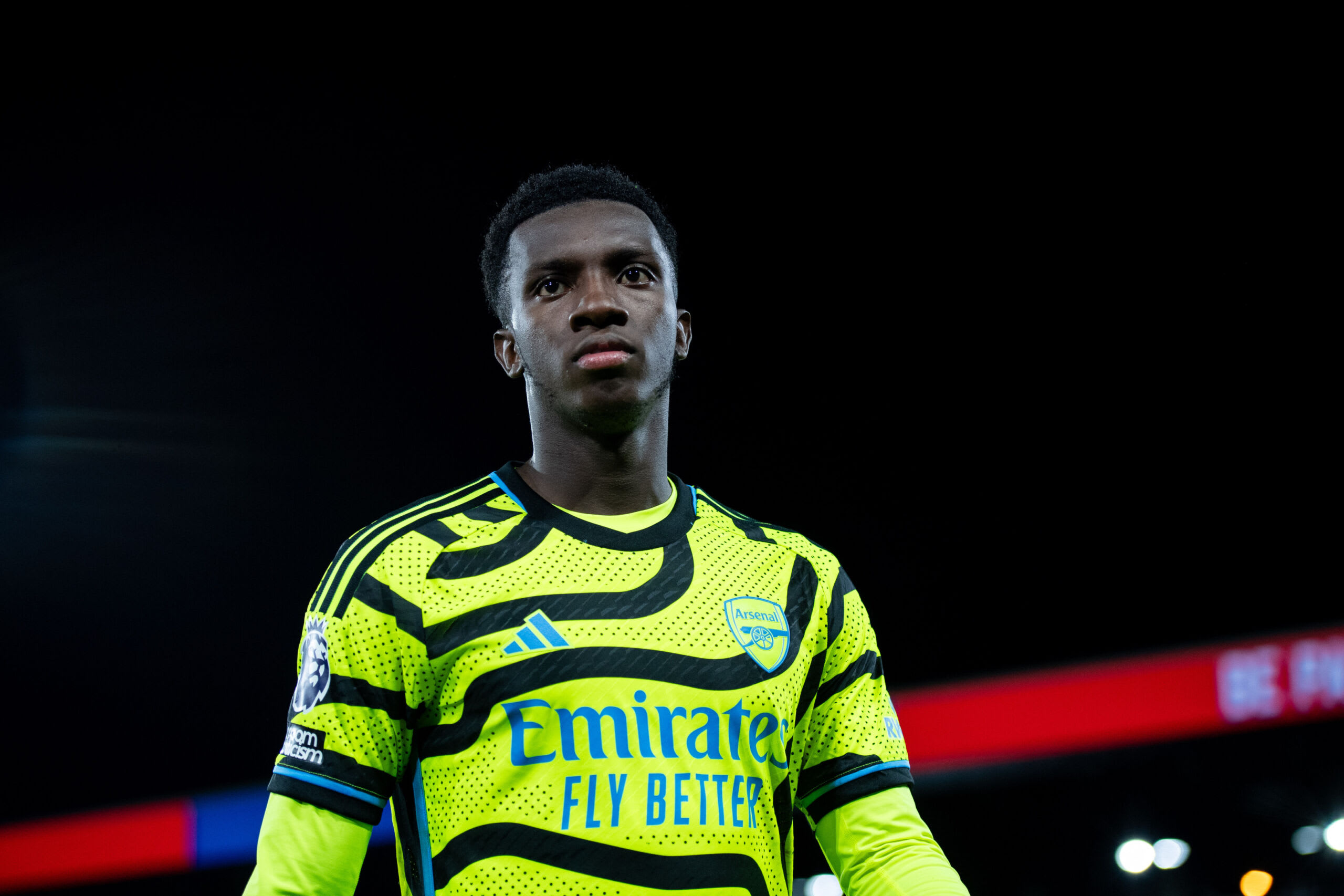 Arsenal's English striker Eddie Nketiah (2R) controls the ball during the English Premier League football match between Arsenal and Fulham at the Emirates Stadium in London on August 27, 2022. - - RESTRICTED TO EDITORIAL USE. No use with unauthorized audio, video, data, fixture lists, club/league logos or 'live' services. Online in-match use limited to 120 images. An additional 40 images may be used in extra time. No video emulation. Social media in-match use limited to 120 images. An additional 40 images may be used in extra time. No use in betting publications, games or single club/league/player publications. (Photo by Glyn KIRK / AFP) / RESTRICTED TO EDITORIAL USE. No use with unauthorized audio, video, data, fixture lists, club/league logos or 'live' services. Online in-match use limited to 120 images. An additional 40 images may be used in extra time. No video emulation. Social media in-match use limited to 120 images. An additional 40 images may be used in extra time. No use in betting publications, games or single club/league/player publications. / RESTRICTED TO EDITORIAL USE. No use with unauthorized audio, video, data, fixture lists, club/league logos or 'live' services. Online in-match use limited to 120 images. An additional 40 images may be used in extra time. No video emulation. Social media in-match use limited to 120 images. An additional 40 images may be used in extra time. No use in betting publications, games or single club/league/player publications. (Photo by GLYN KIRK/AFP via Getty Images)