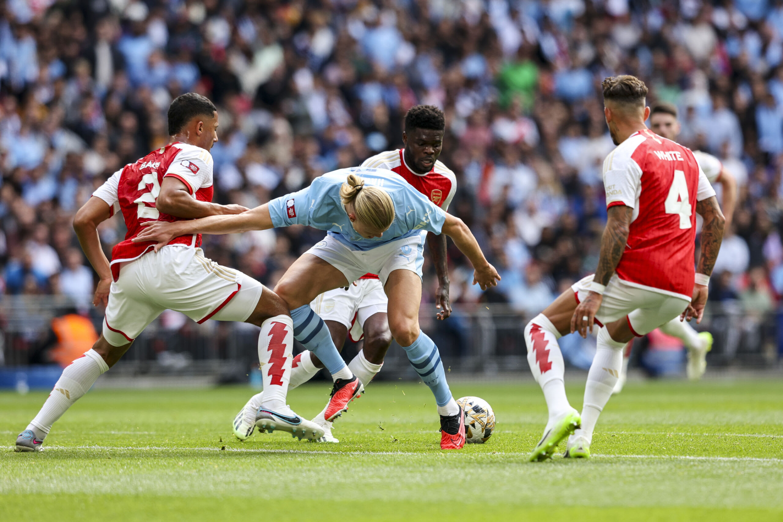 Arsenal contained Erling Haaland on Sunday. (Photo by Robin Jones/Getty Images)
